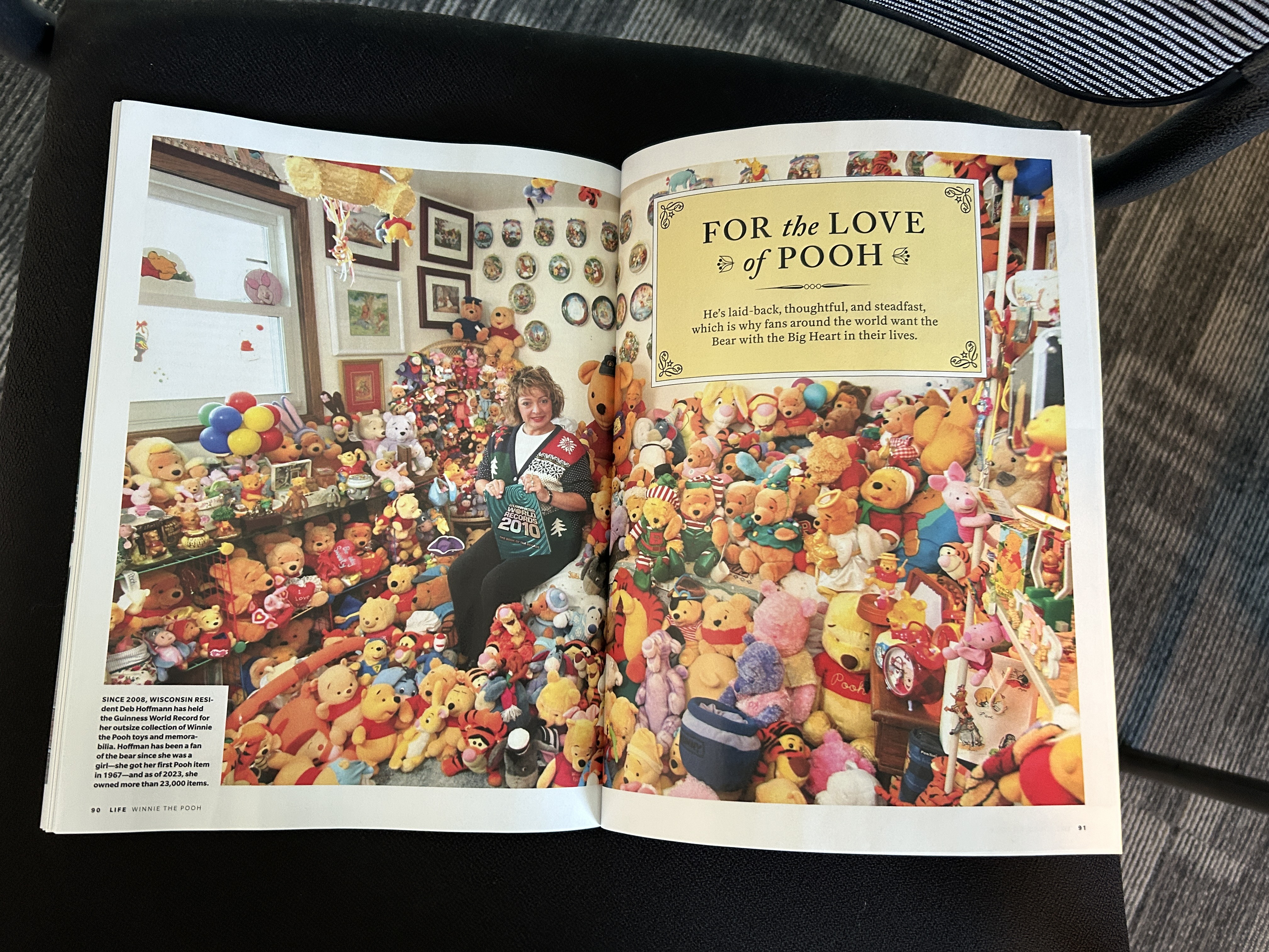 Besides featuring my Guinness World Record collection on pages 90-91, the magazine also highlights the White River Black Bear Cub who helped inspire the Pooh stories, Jim Cummings who is the voice of Pooh and Tigger as well as lots of other great Pooh trivia.
